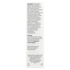 Água/aqua/eau, caprylic/capric triglyceride, esqualano, dimeticona, butilenoglicol, methyl trimethicone, glicerina, betasitosterol, ceramida NP, ceramida ng, palmitoyl tripeptides-8, extrato da folha de Camellia sinensis, manteiga de Butyrospermum parkii (karité), cera de Euphorbia cerifera (candelilla), tocoferol, beenato de glicerila, lecitina, poliacrilamida, polissilicone-11, polyglyceryl-4 isostearate, dextrano, ácido oleico, sodium acrylates copolymer, c13-14 isoparaffin, ammonium acryloyldimethyltaurate/vp copolymer, laureth-7, fenoxietanol, ethylhexylglycerin.