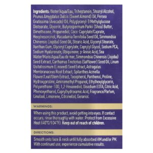 Aplique no rosto e pescoço até que seja totalmente absorvido de manhã e/ou à noite. Com o uso contínuo, obtenha resultados cumulativos.