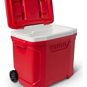 Rolo Igloo Profile II de 28 litros, vermelho – Roda para facilitar o transporte e travar A alça telescópica permite que o refrigerador seja empurrado ou puxado – Alça telescópica com travamento e ganchos de engrenagem para guardar sacolas, bolsas e muito mais – O design elevado da tecnologia Cool Riser melhora o desempenho de resfriamento – Os canais de despejo integrados no forro permitem a fácil purga do gelo derretido – Alças laterais moldadas para facilitar o carregamento/descarregamento