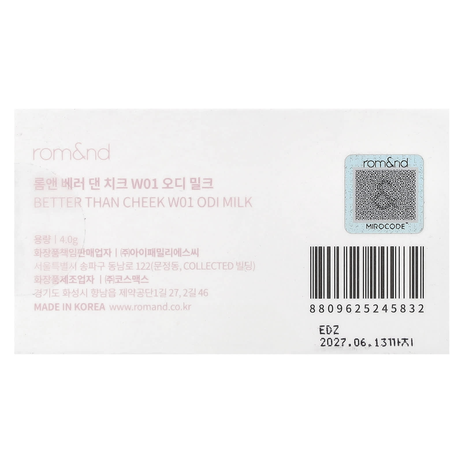 rom&nd Better Than Cheek W01 Odi Milk 4 g – rom&nd Beleza Maquiagem Rosto Blush Blushes K-Beauty.