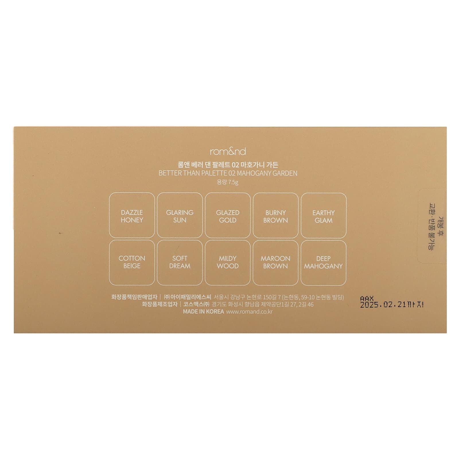 rom&nd Better Than Palette 02 Mahogany Garden 7.5 g – rom&nd Beleza Maquiagem Olhos Sombra Sombras K-Beauty.