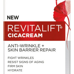 Hidratante facial antienvelhecimento L'Oreal Paris Revitalift Cicacream com Centella Asiatica para reparo antirrugas e da barreira cutânea, sem perfume, sem parabenos, 1,7 fl; oz. – Hidratante facial com pró-retinol e Centella Asiatica – capim-tigre, reduz visivelmente as rugas e ajuda a reparar a barreira cutânea para resistir aos sinais visíveis de envelhecimento – Inspirado na medicina chinesa antiga – Diz a lenda que tigres usado para enrolar em Centella Asiatica para ajudar a se recuperar de batalhas – Agora formulado em Revitalift Cicacream para ajudar a reparar a barreira cutânea e os sinais de envelhecimento – Cicacream fortalece a barreira cutânea, como um casulo para proteger a pele dos agressores internos e externos – Tratamento diário intensivo, o Cicacream é um hidratante facial diário que deve ser usado após a limpeza e antes de outro hidratante ou SPF, dia e noite – Testado dermatologicamente; suave para peles sensíveis – Cicacream foi desenvolvido para respeitar a barreira cutânea – sem fragrâncias, sem parabenos, sem corantes, sem corantes, sem corantes, sem álcool gratuito e testado contra alergias