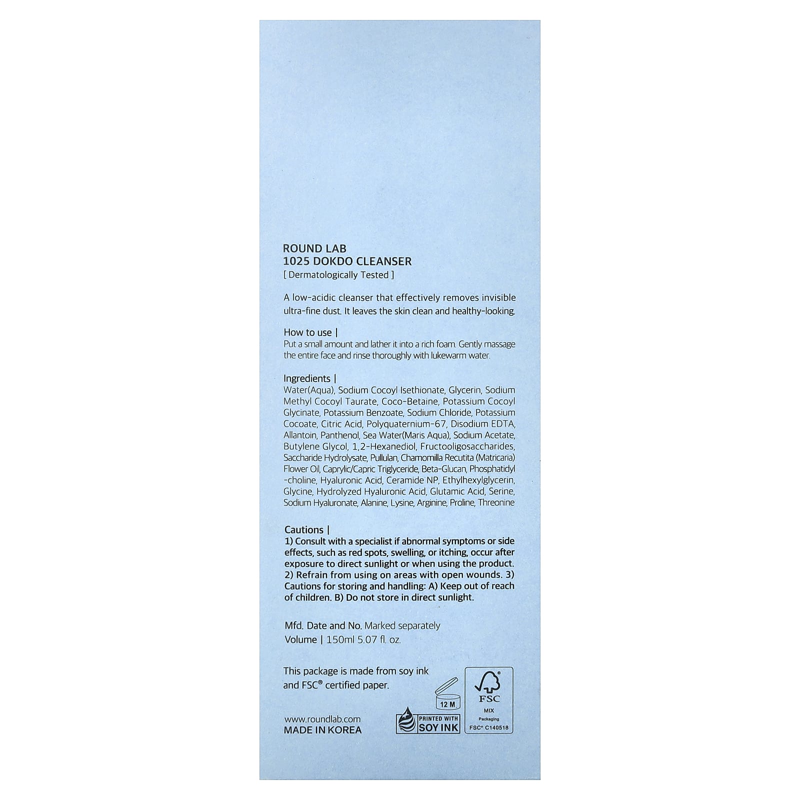 Round Lab 1025 Dokdo Cleanser 150 ml (507 fl oz) – Round Lab Beleza Limpeza Facial Sabonetes Faciais Limpeza facial K-Beauty.