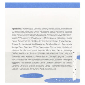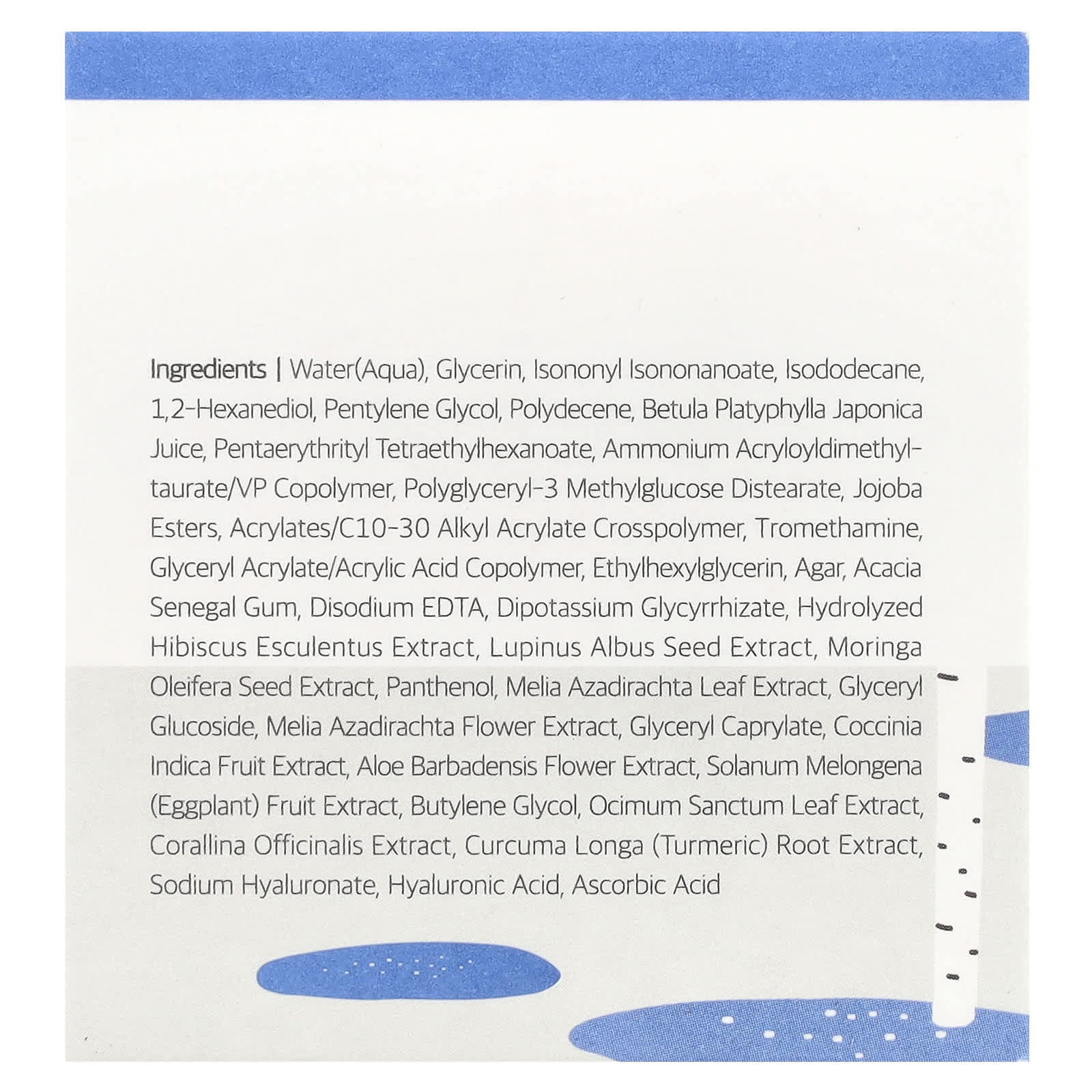 Água, glicerina, isononyl isononanoate, isododecane, 1,2-hexanediol, pentilenoglicol, polideceno, suco de Betula platyphylla japonica, pentaerythrityl tetraethylhexanoate, ammonium acryloyldimethyl- taurate/vp copolymer, polyglyceryl-3 methylglucose distearate, jojoba esters, acrylates/c10-30 alkyl acrylate crosspolymer, trometamol, glyceryl acrylate/acrylic acid copolymer, ethylhexylglycerin, ágar, goma de acácia-do-senegal, edetato dissódico, dipotassium glycyrrhizate, extrato de Hibiscus esculentus hidrolisado, extrato da semente de Lupinus albus, extrato da semente de Moringa oleifera, pantenol, extrato da folha de Melia azadirachta, glyceryl glucoside, extrato da flor de Melia azadirachta, caprilato de glicerila, extrato da fruta de Coccinia indica, extrato da flor de Aloe barbadensis, extrato da fruta de Solanum melongena (berinjela), butilenoglicol, extrato da folha de Ocimum sanctum extrato de Corallina officinalis, extrato da raiz de Curcuma longa (cúrcuma), hialuronato de sódio, ácido hialurônico, ácido ascórbico.