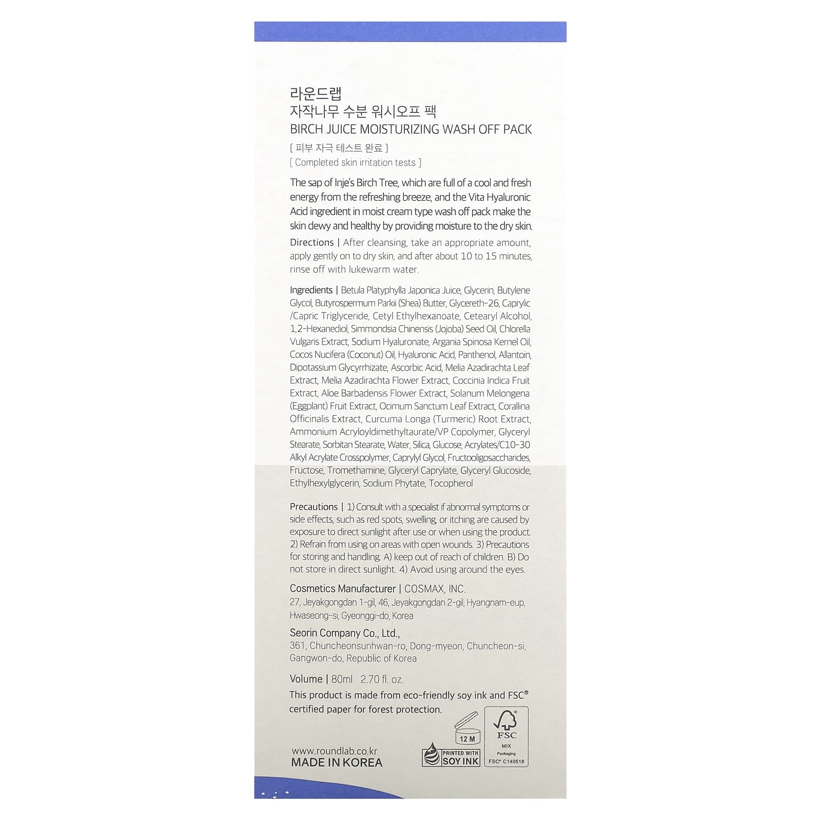 Round Lab Embalagem de Lavagem Hidratante com Suco de Bétula 80 ml (270 fl oz) – Round Lab Beleza Limpeza Facial Sabonetes Faciais Limpeza facial K-Beauty.