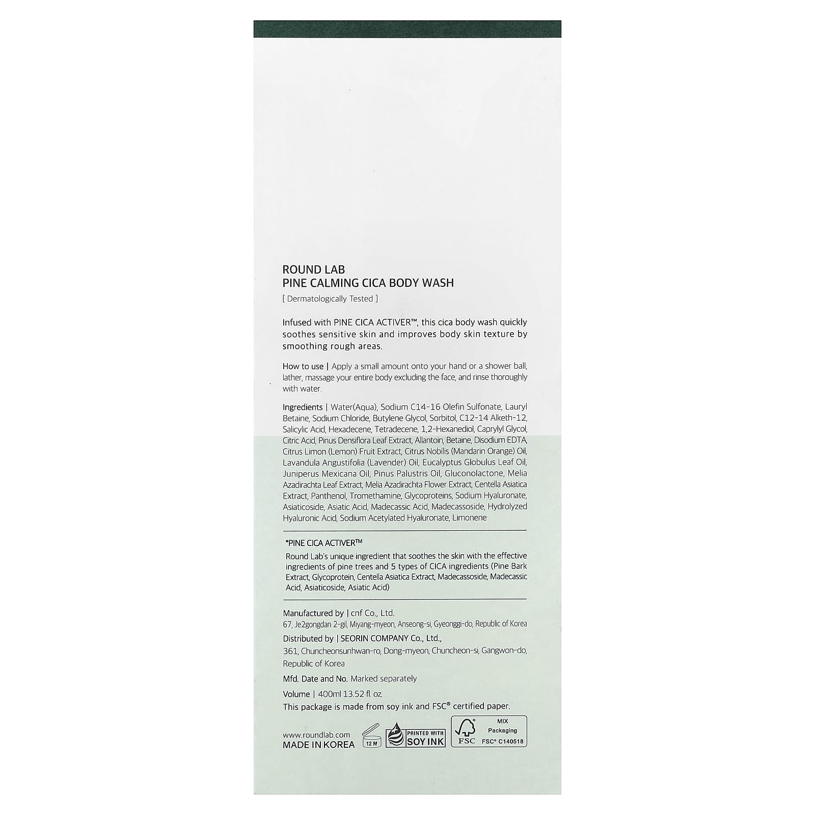 Round Lab Sabonete Líquido Calmante de Cica de Pinho 400 ml (1352 fl oz) – Round Lab Cuidados Pessoais Banho Sabonete Líquido Cuidados com o Corpo Cuidado corporal K-Beauty.