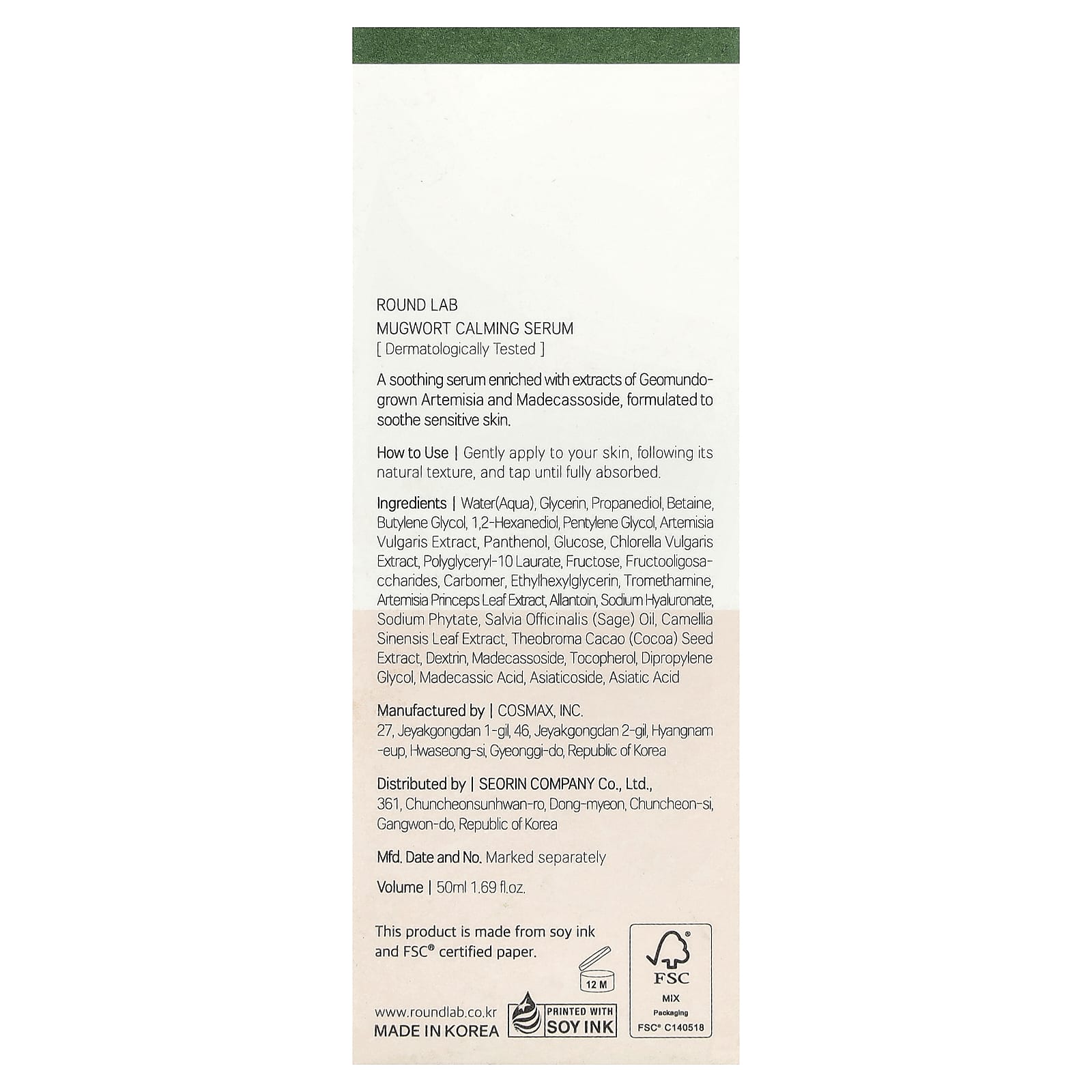 Round Lab Sérum Calmante de Artemísia 50 ml (169 fl oz) – Round Lab Beleza Tratamentos e Séruns Séruns Faciais Séruns calmantes Séruns calmantes K-Beauty.