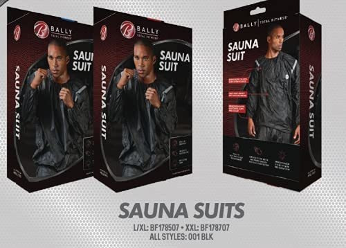 Bally Total Fitness Mens Sauna Suit, Black, Large-X-Large – Seals In Body Heat – Increases Perspiration – Reflective Trim – Burns More Calories