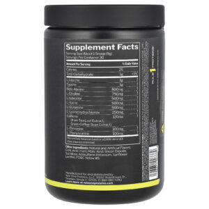 Intensificador de treinamento de partes e suporte de recuperação de partes. Cada colher medidora fornece uma mistura de aminoácidos para auxiliar a reparação muscular junto com a cafeína da folha de chá e dos extratos de café verde para um reforço de energia a qualquer momento.