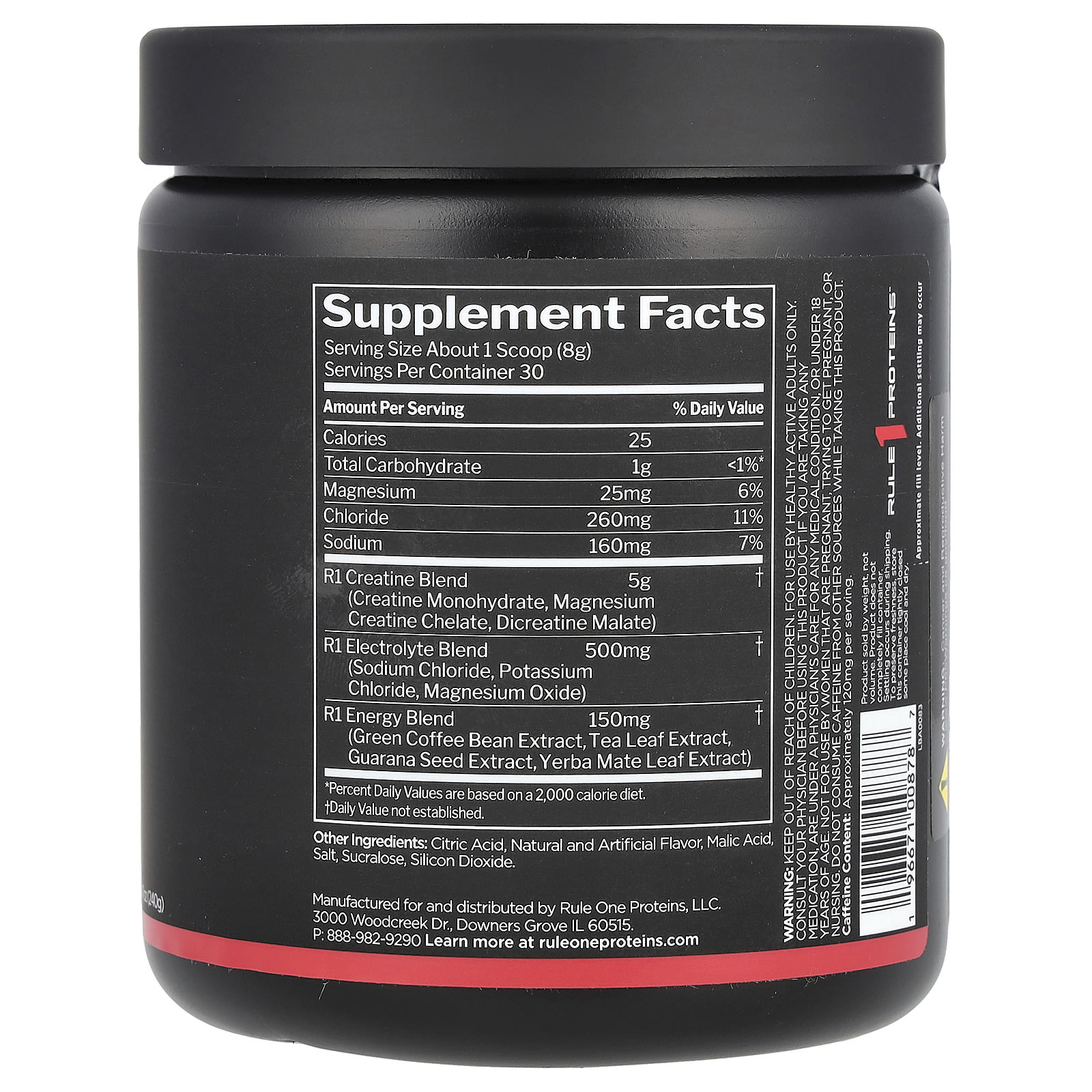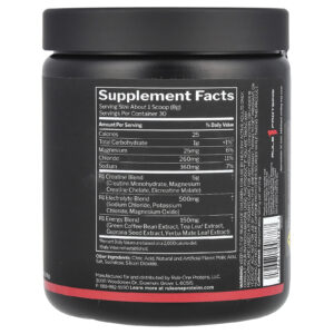 Uma combinação de creatina, eletrólitos e cafeína de extratos de chá, café, guaraná e erva-mate elaborada para promover desempenho de alta intensidade, energia, tamanho e hidratação.