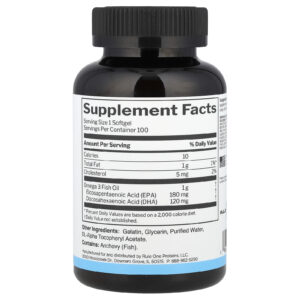 As Cápsulas Softgel de Óleo de Peixe R1’s fornecem 1.000 mg de óleo de peixe, rendendo 180 mg de EPA e 120 mg de DHA. Nossos corpos não podem produzir esses nutrientes essenciais com eficácia. Portanto, eles devem ser obtidos de frutos do mar ou suplementos feitos de origem marinha.
