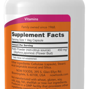 Rutina 450mg Now Foods Ritin 100Cáps Produto Importado