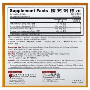 Ações: Estimula a secreção de muco da superfície interna da traqueia, revigora os cílios para remover o muco e, portanto, promove um sistema respiratório saudável.