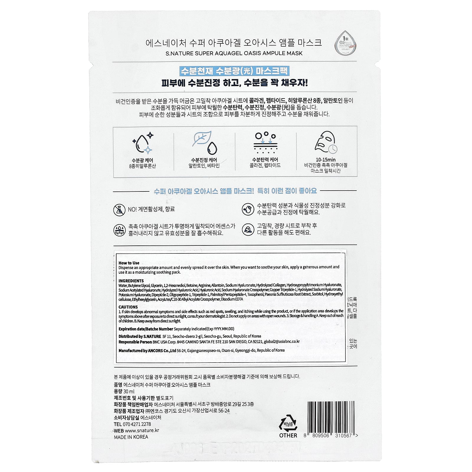 S.NATURE Máscara de Beleza Super AquaGel Oasis Ampule 30 ml