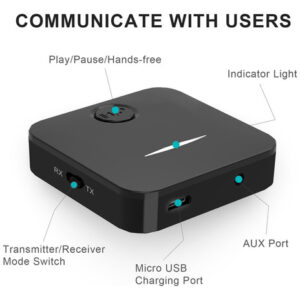 5mm Wireless Audio Adapter, Mic Calling Pair Bluetooth Devices Simultaneously, For TV/Headphones/PC/Home Stereo/