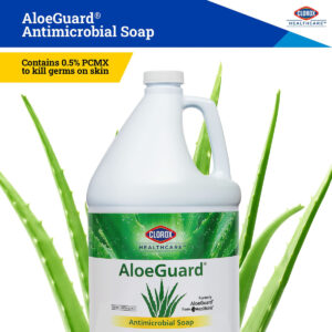 Clorox Healthcare AloeGuard Antimicrobial Soap, 1 Gallon Bottle Antimicrobial Hand Soap for Healthcare Professionals Handwashing Soap, Liquid Hand Soap – 1 gallon bottle, Triclosan-free antimicrobial soap designed exclusively for the healthcare environment to kill germs that commonly contaminate hands and to control the spread of infection – Designed with the demanding hand hygiene needs of healthcare professional in mind, this antibacterial soap is formulated with aloe vera, vitamin E, and emollients the skin – The aloe vera-infused formula protects the skins delicate balance and chloroxylenol provides high antimicrobial efficacy necessary for personal protection and the reduction of cross-contamination, – A hand hygiene solution that kills pathogenic microorganisms with rapid antimicrobial action while it soothes, conditions the skin without parabens or phthalates. Effectively help stop the spread of bacteria and soothe the skin, while keeping patients, staff and visitors safeguarded with an array of hand hygiene solutions offered through Clorox Healthcare – FDA Registered OTC Product: NDC #69540-0027-4