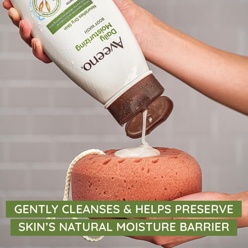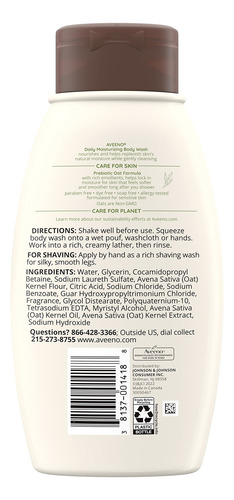 Sabonete líquido hidratante diário Aveeno, 12 ml. 1 onça, pacote com 3 frascos de 12 onças fluidas de cada sabonete líquido hidratante diário Aveeno com aveia nutritiva para ajudar a repor a umidade natural da pele e limpar a pele enquanto remove sujeira, óleo e bactérias – Este sabonete líquido cremoso hidrata a pele para uma pele visivelmente mais saudável toda vez que você toma banho – A fórmula exclusiva da Aveeno combina aveia nutritiva com emolientes ricos, para reter a umidade e é suave o suficiente para peles sensíveis – a lavagem diária repõe a umidade para uma pele mais macia, suave e saudável, mesmo depois de enxaguar o creme espuma – O sabonete líquido hidratante é da Aveeno, uma marca recomendada por dermatologistas. É levemente perfumado e sem sabão e sem corantes