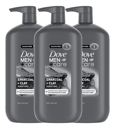 Sabonete purificante corporal e facial DOVE MEN + CARE, 3 unidades de argila carbonácea com tecnologia nutritiva de microhidratação 24 horas, 30 onças