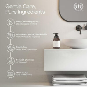 Ingredientes: ácido cítrico, cocamidoprol Pil betaína, óleo essencial natural, glicerina, nitrato de magnésio, metilcloroisotiazolinona, metilisotiazolinona, cloreto de sódio, lauril sulfato de sódio, água Público-alvo Palavras-chave: mão de aromaterapia sabonete, sabonete nutritivo para mãos, lavar as mãos com intenção, sabonete suave para as mãos, sabonete hidratante para mãos, sabonete espumante para pele sensível, sabonete natural para mãos, sabonete com óleos essenciais, sabonete sem produtos químicos, sabonete sem crueldade, sabonete certificado Leaping Bunny, sabonete de base biológica do USDA, sabonete sem parabenos, sabonete sem ftalatos, sabonete sintético sem fragrância, sabonete sem cloro