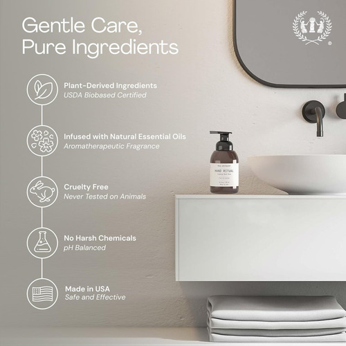 Apothecary Hand Ritual é um luxuoso sabonete aromaterapêutico para mãos projetado para transformar a lavagem diária das mãos em um ritual consciente e intencional. Sua fórmula nutritiva exclusiva acalma a pele com o poder purificador dos ingredientes naturais, mantendo suas mãos macias, limpas, frescas e suavizadas durante todo o dia. Essa espuma rica e cremosa limpa profundamente, removendo sujeira, óleo e resíduos, enquanto hidrata e suaviza a pele sem deixar uma sensação pegajosa. Adequado para todos os tipos de pele, mesmo as mais sensíveis, sua espuma rica facilita o enxágue eficiente e reduz o consumo de água. Enriquecido com óleos essenciais naturais, oferece aromas refrescantes e terapêuticos que encantam os sentidos e elevam seu bem-estar diário.