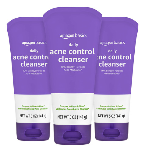 Sabonete facial Amazon Basics Acne Cleanser — Controle diário, força máxima de 10% de peróxido de benzoíla, 5 onças (pacote com 3) — Limpa a acne de forma eficaz: este limpador facial para acne é formulado com concentração máxima de 10% de peróxido de benzoíla para tratar e ajudar a prevenir erupções persistentes de acne — Alívio duradouro da acne: este sabonete com peróxido de benzoíla continua combatendo os problemas de acne mesmo após o enxágue, proporcionando acne consistente cuidados com a pele para confiança diária — SEGURO PARA USO DIÁRIO: livre de doadores de parabenos e formaldeído, este tratamento para acne com peróxido de benzoíla oferece um tratamento suave experiência de limpeza, segura para seu cuidado diário da pele contra a acne – AJUDA A CONTROLAR AS ERUPÇÕES: Projetado como um limpador para controle da acne, ajuda a reduzir a frequência e a gravidade das erupções cutâneas, proporcionando o tratamento diário dos problemas de acne – TAMANHO CONVENIENTE: este sabonete para acne vem em um prático pacote de 3 tubos de 5 onças, fácil de transportar e ótimo para uso em qualquer lugar – EXPERIMENTE: se você gosta do limpador de acne Clean & Clear Continuous Control, convidamos você a experimentar a Amazon Limpador diário básico para controle de acne