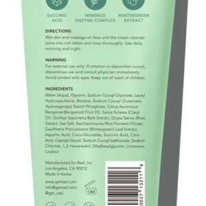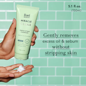 Sabonete facial Rael, limpador esfoliante Miracle Clear — Limpador facial para pele oleosa e propensa a acne, limpador facial suave, hidratante, com ácido succínico e minerais, vegano, livre de crueldade (5,1 fl. oz) — Para pele propensa a acne — Especialmente formulado para pele oleosa, acne, poros grandes ou entupidos — ALIMENTADO PELA NATUREZA — Infundido com ácido succínico para esfoliar suavemente ácido, complexo enzimático Minerice para nutrir profundamente a pele e extrato de gaultéria para hidratar. – LIMPEZA EFICAZ – O limpador sedoso e macio esfolia a pele e remove a sujeira dos poros, sem descascar a pele. – PROTETOR – Apoia a saúde da barreira da pele, acalma as manchas existentes e cuida de erupções cutâneas futuras. – PODEROSAMENTE SUAVE – Livre de parabenos, ftalatos, sulfatos, silicones e fragrâncias artificiais. Não irritante, não resseca e seguro para uso diário em todos os tipos de pele.