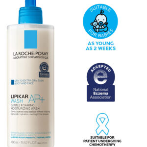 Sabonete hidratante com espuma suave La Roche-Posay Lipikar AP+ | Manteiga de karité + niacinamida + glicerina | Sabonete hidratante corporal e facial para pele seca | Aceito pela Associação Nacional de Eczema | Sem sabão – Sabonete líquido hidratante para peles extremamente secas e sensíveis fornece hidratação 24 horas a partir do banho. – Aceito pela National Eczema Association. Este sabonete facial e corporal para eczema é adequado para bebês de até 2 semanas, crianças e adultos. Da marca #1 de cuidados corporais nas farmácias europeias.* – O sabonete hidratante corporal e facial fornece hidratação duradoura de 24 horas. Sabonete líquido para pele sensível que limpa suavemente a pele e ajuda a aliviar o ressecamento – Este limpador espumante e antiderrapante para pele seca ajuda a proteger dos efeitos ressecantes da água e deixa a pele limpa e instantaneamente suavizada. – A manteiga de karité ajuda a restaurar a película hidrolipídica da pele e ajuda a suavizar a pele. Ajuda a confortar e suavizar a pele seca.
