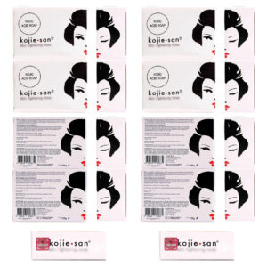 Obtenha um tom de pele uniforme com o sabonete de beleza facial Kojie San! Tenha um sabonete corporal e facial eficaz com o sabonete de beleza facial Kojie San, que ajuda com manchas escuras. Um sabonete para manchas escuras que brilha em tons irregulares para qualquer tipo de pele! Ilumina eficazmente a pele e observa marcas vermelhas, sardas e outras manchas! Ela faz maravilhas como nossa solução para manchas escuras para pele escura. Ilumina a área do biquíni, obtenha um rosto e corpo Kojie San com nosso sabonete clareador corporal Kojic. Nosso sabonete para limpar o corpo e o rosto usa a tecnologia Zero Pigment Light para atingir áreas que precisam de mais cuidado. É por isso que nosso sabonete de pigmentação é eficaz como clareador de pele para rosto, pele e áreas privadas. Isso funciona como corretor de manchas escuras para o corpo e as pernas. O complemento perfeito para produtos de cuidado corporal para mulheres e homens e removedor de manchas escuras para áreas faciais. Feito com ingredientes naturais, o sabonete de beleza facial Kojie San é suave para o rosto, corpo e pele, funcionando tanto para homens quanto para mulheres. Isso funciona para todos os tipos de pele. Deixe sua pele com a melhor aparência com o sabonete de ácido kójico original, o sabonete facial e corporal Kojie San Benefícios: ilumina uniformemente a pele Oferece hidratação ao sabonete facial Ajuda a obter uma pele radiante e brilhante Visa as áreas problemáticas para máxima absorção Limpa a pele para outros produtos de hiperpigmentação De que é feito nosso sabonete para sabonete facial e corporal? Água, ácido kójico, óleo de coco, óleo de melaleuca, glicerina, fragrância natural de laranja, óleo mineral, goma xantana, glicose, hidróxido de sódio, fenoxietanol, chondrus crispus, caprililglicol Instruções: Aplique o sabonete corporal e facial de ácido kójico até formar espuma e massageie suavemente na pele. Deixe o sabão ficar por 2-3 minutos e depois enxágue. Por que os sabonetes Kojie San para mulheres e homens? Os produtos japoneses para cuidados com a pele Kojie San usam uma fórmula natural para produtos de beleza japoneses eficazes. – Revele seu eu mais radiante: experimente um verdadeiro sabonete de ácido kójico que ajuda a tornar o tom da pele mais brilhante e claro. O sabonete Kojie San ajuda a diminuir a visibilidade de manchas escuras, sardas, acne, estrias, tom de pele irregular e outros problemas de tom de pele. – Pele perfeita da cabeça aos pés: o sabonete de ácido kójico Kojie San original é um sabonete facial maravilhoso para mulheres e homens, que também hidrata e aperfeiçoa a aparência da pele. Use este sabonete em barra para ajudar a reduzir a hiperpigmentação e melhorar as axilas e a pele escura na parte interna das coxas, rosto e pescoço. – Ingredientes de qualidade: sabemos o quão sensível pode ser a pele danificada pelo sol, então nosso sabonete em barra para rosto e corpo contém glicerina, melaleuca, óleo de coco e outros ingredientes naturais para limpar a pele suavemente. – Diga adeus às manchas escuras: este fresco aroma de laranja O sabonete facial e corporal possui a tecnologia Zero Pigment Light para atingir áreas que precisam de cuidado extra para proporcionar uma pele mais uniforme e brilhante. Verdadeiramente o sabonete japonês perfeito – Casa do sabonete de ácido kójico original: a formulação Kojie Sans combina ingredientes eficazes para nutrir a pele e combater as manchas para revelar sua beleza interior! Verifique a autenticidade de seus produtos com nossa tecnologia Hidden Tag. – O pacote inclui: 6 barras de 135 g de sabão Kojie San