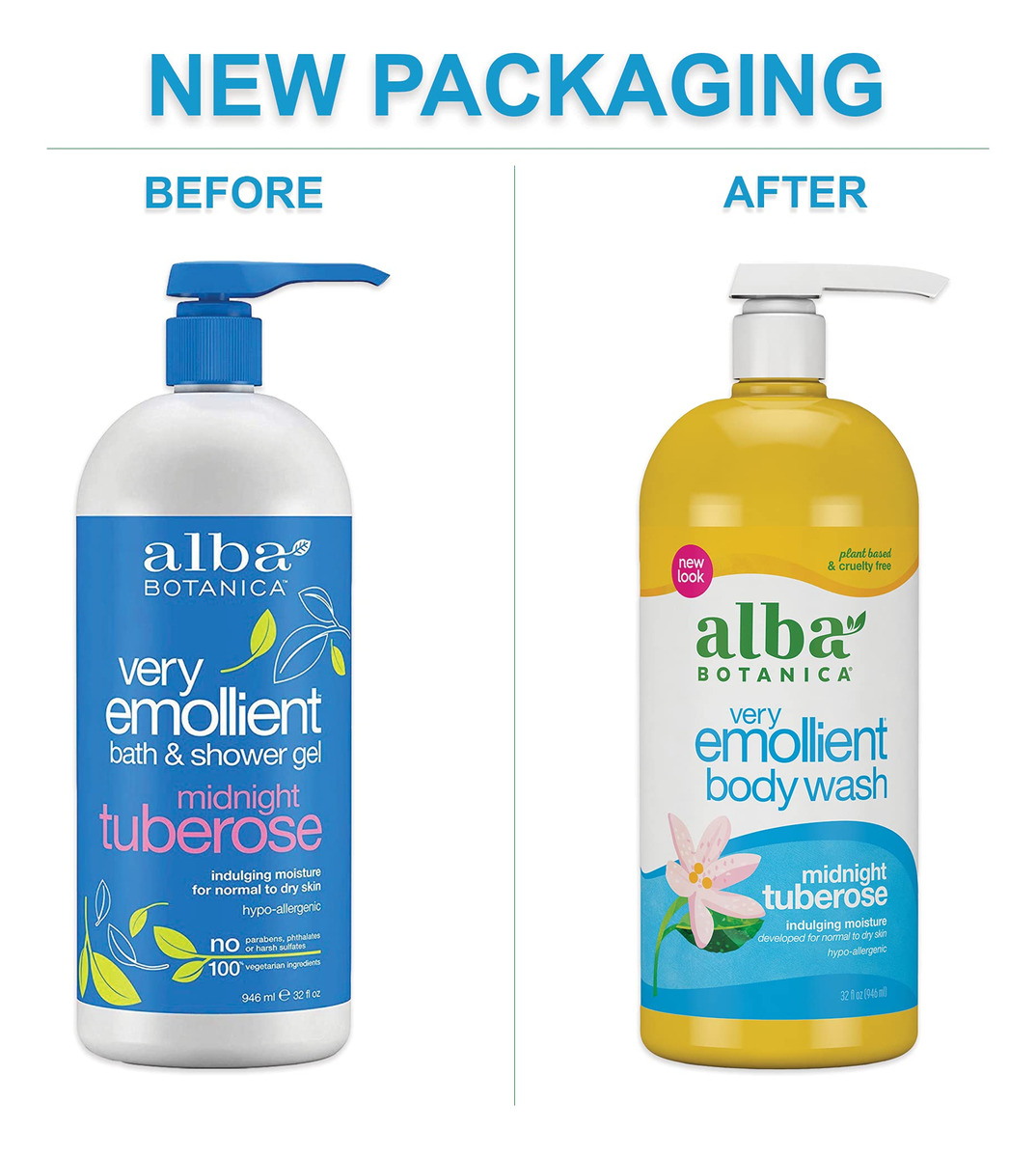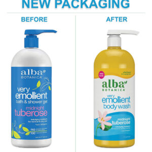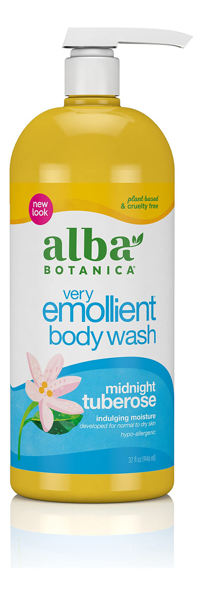 Sabonete líquido muito emoliente Alba Botanica, tuberosa meia-noite, 32 onças — Um frasco de 32 onças de sabonete líquido Alba Botanica Very Emolient Midnight Tuberose — Hidrata ricamente enquanto limpa, acalma e suaviza a pele — Feito com uma mistura de ingredientes botânicos hipoalergênicos e à base de plantas — Fórmula 100% vegetariana feita sem ingredientes agressivos, como parabenos, ftalatos ou fragrâncias sintéticas – Sempre livre de crueldade, nunca testado em animais; reconhecido pelo Programa Leaping Bunny