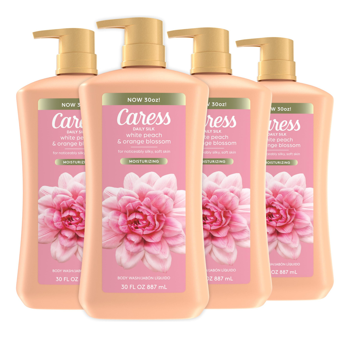 Caress Body Wash for Women with Pump, Daily Silk White Peach & Orange Blossom, Shower Gel Body Wash Moisturizing for Noticeably Silky, Soft Skin, 30 fl oz, 4 Pack – Transform your shower routine with the iconic fragrance of Caress Daily Silk White Peach & Orange Blossom Body Wash 4 Pack – Caress body wash doesnt just delight your sensesit also washes away dirt and bacteria while leaving your skin feeling instantly moisturized – Spark your senses with the silky texture and rich lather of this body wash for noticeably silky, soft skin – Caress Daily Silk body soap immerses your senses with floral fragrances and fruity undertones. The bright, sweet scent of orange blossom is complemented by the juicy, fresh zest of white peach – At Caress, we believe our moisturizing body wash should leave you feeling transformed. Rich lather and lush scents awaken your senses, clear your mind and unlock creativitythats the Caress spark