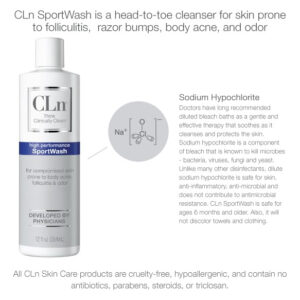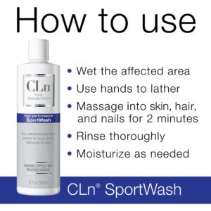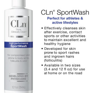 O CLn SportWash foi desenvolvido por dermatologistas para atletas e pessoas ativas com pele propensa a acne, infecções e foliculite. Essa formulação não secante pode ser usada com esportes de contato, exercícios e outras atividades físicas que promovem suor e oleosidade na pele. É um limpador de pele clinicamente testado, formulado com uma combinação exclusiva de ingredientes e preservado com hipoclorito de sódio em um recipiente especial hermético para distribuição higiênica. O ClN SportWash pode ser usado da cabeça aos pés e deve ser aplicado na pele por 1-2 minutos antes de ser enxaguado. É melhor se usado imediatamente após o exercício físico indutor de suor. Os hidratantes podem ser aplicados posteriormente, conforme necessário. – Desenvolvidos por médicos para atletas: higiene clinicamente comprovada para atletas e pessoas com estilos de vida ativos, propensos a odor corporal, odor nos pés, acne nas costas, foliculite, micose e coceira na garganta. – Fórmula leve, mas eficaz: o gel de banho concentrado e patenteado é preservado com hipoclorito de sódio e ingredientes úteis para oferecer resultados poderosos sem irritantes desnecessários. – Microorganismos Poder de eliminação: academias e equipamentos suados de luta livre, hóquei e esportes de contato abrigam micróbios invisíveis, como Staph Bactérias que contribuem para infecções cutâneas esportivas, como MRSA. – Sem perfume, sem parabenos e hipoalergênico: formulado sem irritantes agressivos, este limpador é livre de esteróides, antibióticos, parabenos, SLS, triclosan, óleo e fragrâncias. – Como usar: logo após exercícios ou esportes de contato, molhe completamente o corpo no chuveiro. Massageie na pele, cabelos e unhas por 2 minutos. Enxágue bem. Use dentro de 30 a 60 minutos após a atividade.