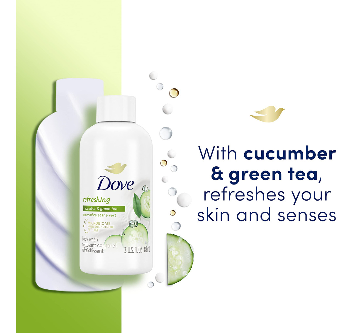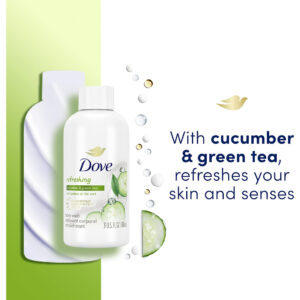 Sabonete líquido Dove Go Fresh de pepino e chá verde de 3 onças (pacote com 24) — O sabonete líquido Dove Go Fresh com aroma de pepino e chá verde proporciona uma pele mais macia e suave após apenas um banho – Limpadores 100% suaves, sem sulfato – #1 Recomendado por dermatologistas – O aroma refrescante de pepino e chá verde revitaliza seus sentidos – A fórmula com tecnologia Nutrium Moisture fornece nutrientes naturais à pele – Fórmula leve, hidratante e refrescante que efetivamente nutre a pele