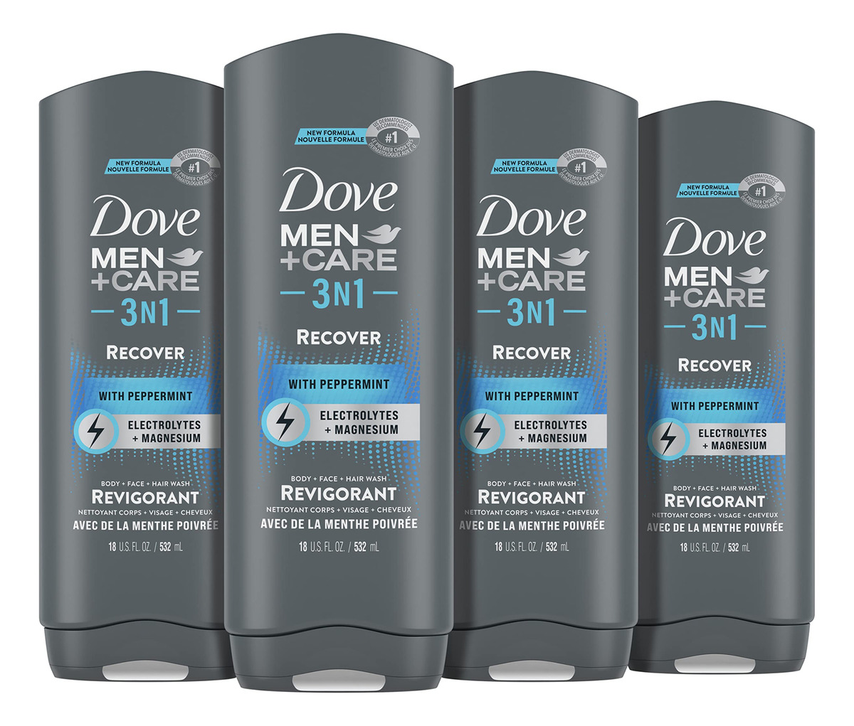 Dove Men+Care Post-Workout 3 em 1 (corpo, rosto e sabonete de cabelo) com 4 unidades de hortelã, infusão de eletrólitos e magnésio 18 onças – 3 em 1: este sabonete líquido multitarefa 3 em 1 para homens limpa cabelo, corpo e rosto para ajudá-lo a se manter ativo em qualquer coisa que o dia lhe ofereça – REFRESQUE-SE E REIDRATE COM SABONETE LÍQUIDO MASCULINO: Dove Men+Care Recover 3 em 1 (+ Face + Hair Wash) é enriquecido com ingredientes hidratantes para homens ativos – ELETRÓLITOS + MAGNÉSIO: sabonete líquido masculino ativo com eletrólitos e magnésio para se refrescar no banho após o exercício – PEPPERMINT: Dove O sabonete líquido masculino Men+Care Recover apresenta um aroma de menta para refrescar seus sentidos – CUIDADO QUE VAI ALÉM: toda a linha de sabonetes corporais Dove para homens vem em frascos 100% reciclados e é certificada como livre de crueldade pela PETA
