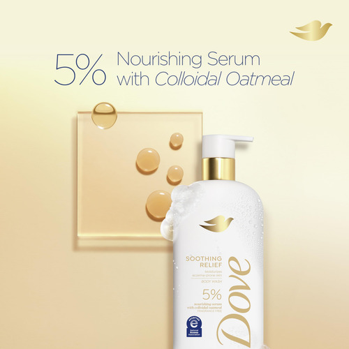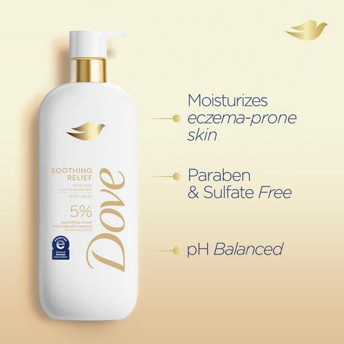 O sabonete líquido Dove Fragrance Free Soothing Relief hidrata a pele propensa ao eczema. 5% de soro nutritivo com aveia coloidal 18,5 onças – INFUNDE HIDRATAÇÃO: hidrata a pele propensa ao eczema – FEITO COM INGREDIENTES ATIVOS PARA A PELE: Formulado com 5% de soro nutritivo e aveia coloidal – CALMANTE E NUTRITIVO: ajuda a acalmar e nutrir a pele propensa ao eczema por meio de limpeza e hidratação suaves — Sabonete cremoso com sérum: este sabonete líquido cremoso e sem fragrância se transforma em uma espuma aveludada para limpar e cuidar da pele seca — FÓRMULA CLINICAMENTE COMPROVADA: co-criada com dermatologistas e especialistas em beleza