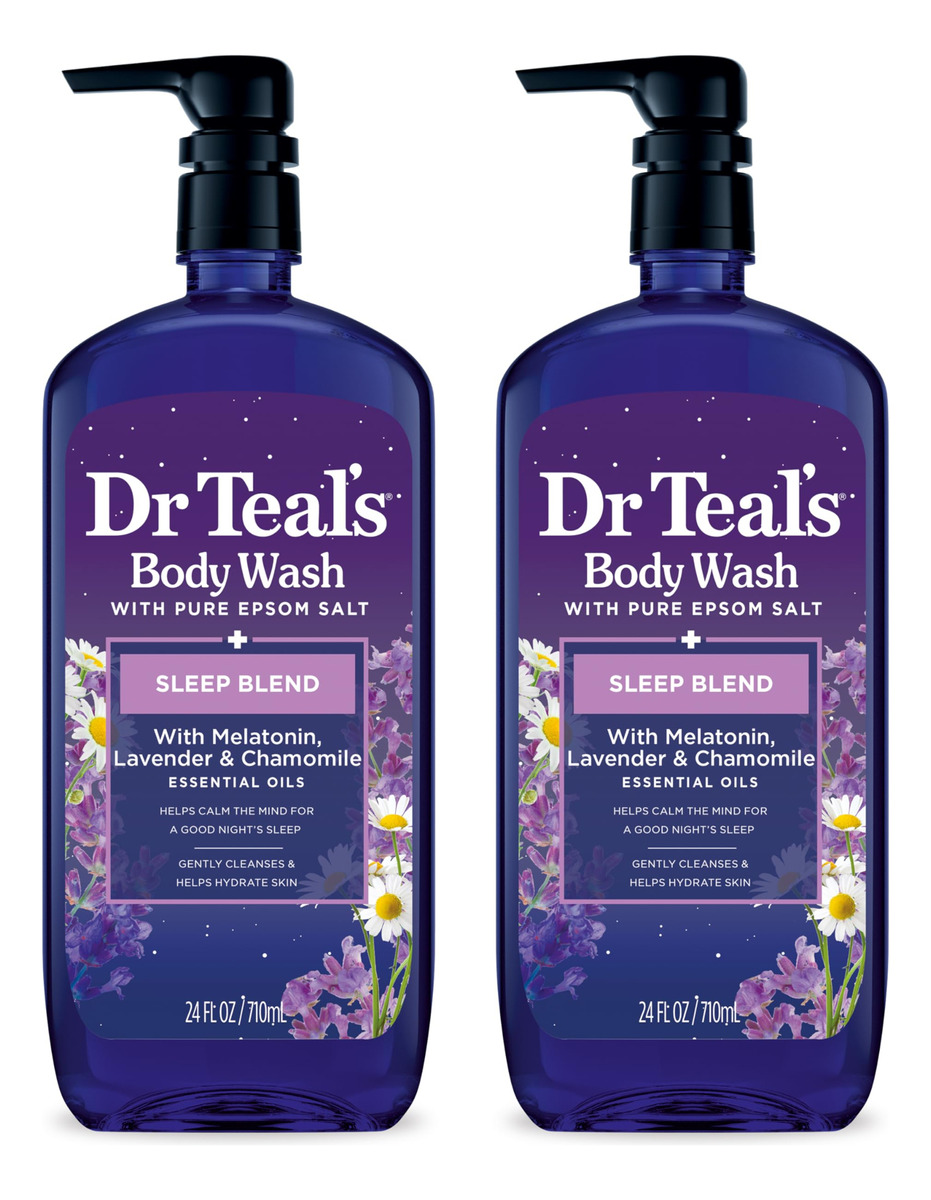 Sabonete líquido Dr. Teal's Sleep Blend com sal puro de Epsom, mistura de melatonina e óleo essencial, 24 fl oz (pacote com 2) — PREPARE-SE PARA DORMIR: uma mistura de óleos essenciais de melatonina, camomila e lavanda ajuda a acalmar a mente para uma boa noite de sono — INGREDIENTES HIDRATANTES: manteiga de karité, aloe vera e vitamina E hidratam profundamente a pele — LAVANDA E CAMOMILA: mergulhe em uma mistura relaxante óleos essenciais de lavanda e camomila – NUTRE A PELE: os óleos essenciais nutrem e suavizam a pele – MELHORE SUA HORA DE DORMIR: recupere os ZZZs – LIMPEZA SUAVE: limpe a pele completamente e completamente – ESFOLIE: misture com sal de Epsom puro para criar um esfoliante luxuoso – SEM INGREDIENTES AGRESSIVOS: sem parabenos e ftalatos – LIVRE DE CRUELDADE: fórmula vegana e nunca testada em animais