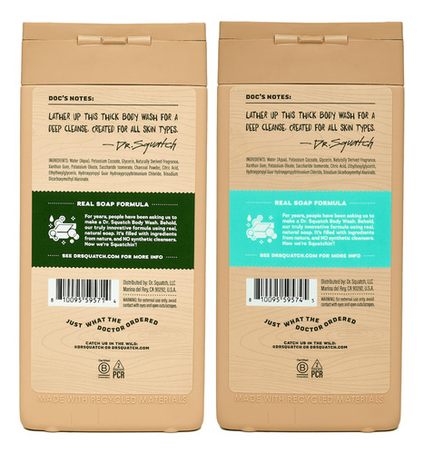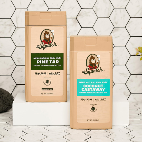 Sabonete corporal natural feito com sabonete real, não com sabonete real! Abandone o limpador sintético que você chama de sabonete líquido líquido natural e diga olá ao sabonete líquido natural tão épico que instantaneamente se tornará seu produto principal. Há anos que as pessoas nos pedem que criemos um sabonete líquido natural e agora finalmente temos uma fórmula digna do nome Dr. Squatch! Nossa fórmula hidratante limpa profundamente e está repleta de ingredientes naturais e nutritivos, como glicerina e um limpador derivado de coco, para espumas luxuosas e esfoliantes satisfatórios. Disponível em quatro dos nossos aromas masculinos exclusivos mais populares, esta fórmula é livre de sulfatos, parabenos e ftalatos, além de ser perfeita para uso diário em todos os tipos de pele. Aromas: Pine Tar – Robusto, amadeirado e forte, exatamente como um homem de Squatch deveria ser. Coconut Castaway – Um aroma tranquilo e exótico de coco torrado. – FÓRMULA DE SABONETE REAL – Sabonete líquido natural feito com sabonete real, sem sabonete real! Nosso lendário sabonete líquido em barra está livre de substâncias nocivas para que você possa se ensaboar sem que sulfatos, parabenos e ftalatos derrubem seu corpo. – INGREDIENTES NATURAIS – Formulado com ingredientes naturais que hidratam, hidratam, nutrem e ensaboam. – Testado por dermatologistas – Testado para não irritar e não causar alérgenos. – FÓRMULA INOVADORA – criada com a tecnologia Scent-Lock* para que você possa desfrutar de seu creme Squatch favorito centavos por ainda mais tempo! – PARA USO DIÁRIO MASCULINO – disponível em quatro de nossos aromas masculinos exclusivos