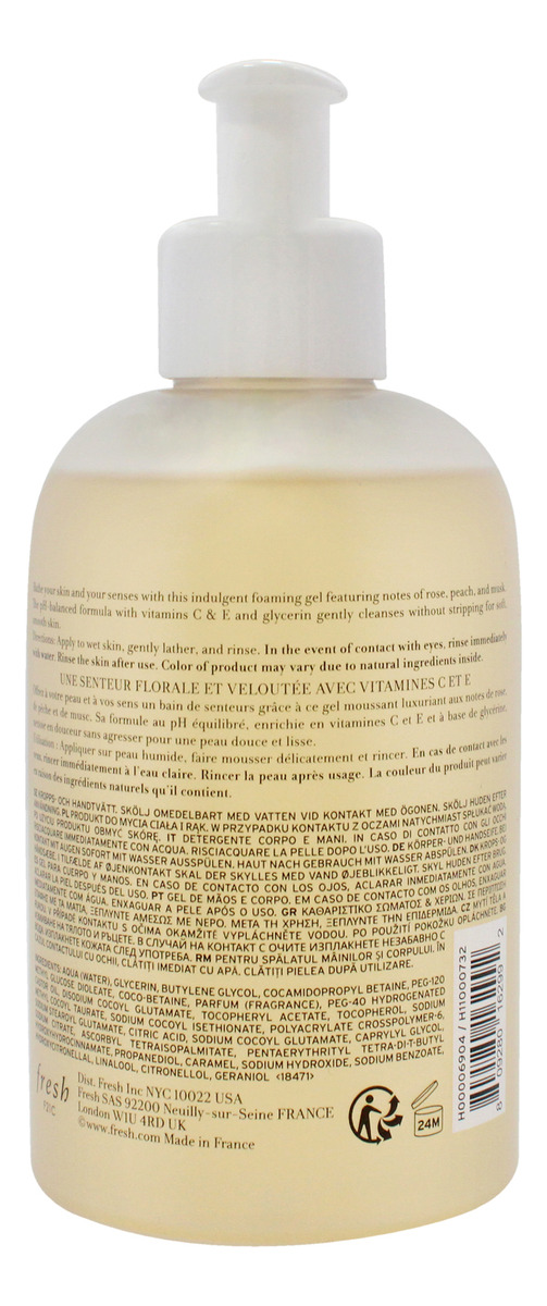 Banhe sua pele e seus sentidos com notas de rosa, pêssego e almíscar com este gel espumante indulgente. Enriquecido com vitaminas C e E e glicerina hidratante, ele limpa e condiciona suavemente sem descascar para uma pele macia e suave