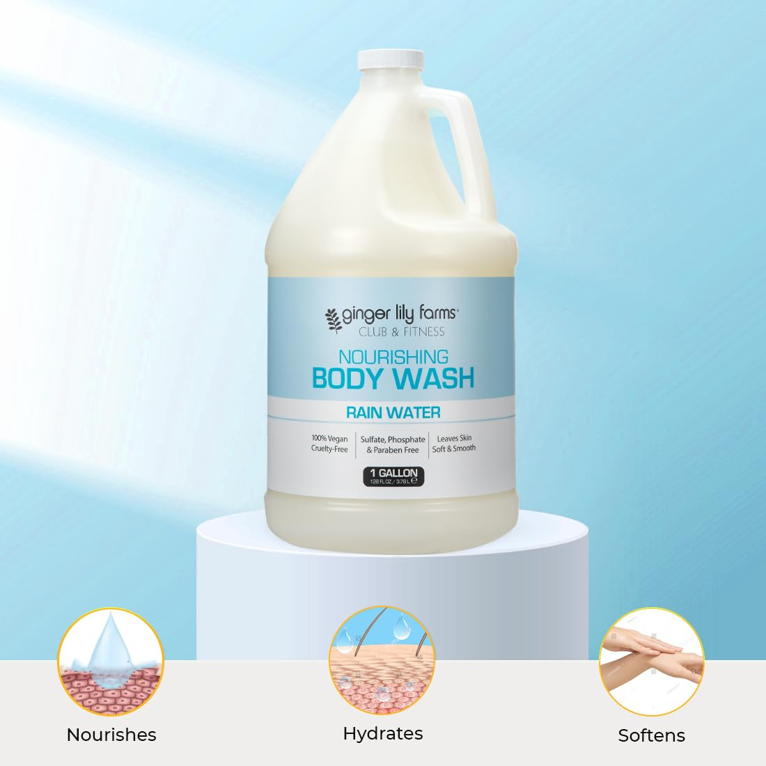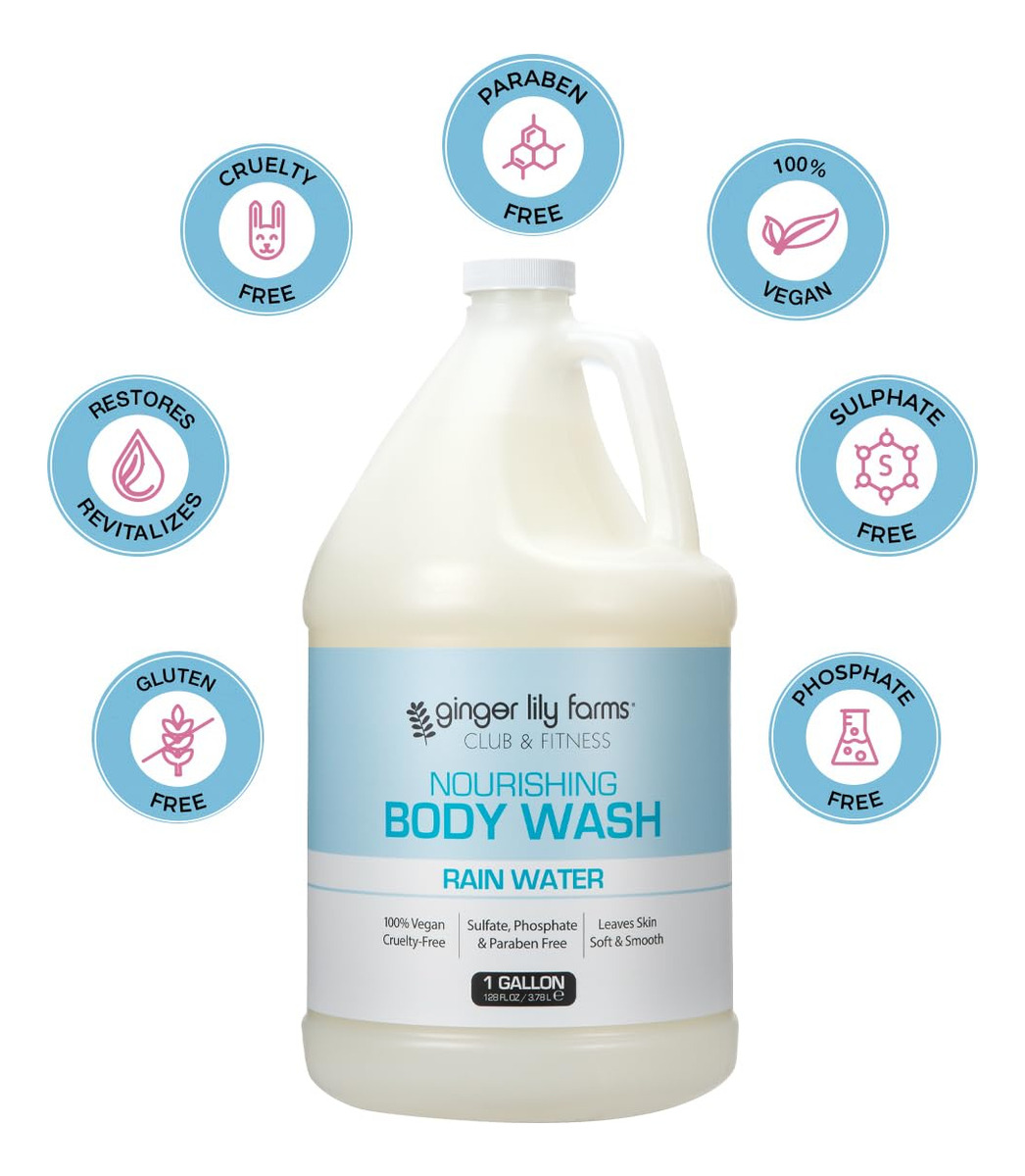 Sabonete líquido nutritivo Ginger Lily Farms Club & Fitness, 100% vegano e livre de crueldade, gel de banho e banho para homens e mulheres, aroma de água da chuva, 1 galão (128 fl. oz.) Recarga — Sabonete líquido nutritivo: remove de forma suave e eficaz a sujeira, o óleo e as bactérias com uma espuma rica e cremosa que deixa a pele macia, suave e livre de produtos químicos agressivos. Adequado para uso diário. – Perfume refrescante da água da chuva: o aroma refrescante da água da chuva fará com que você se sinta aliviado e revigorado. Perfeito para remover o suor e o odor após o treino. – Ingredientes de origem natural: enriquecidos com vegetais de origem natural para hidratar e acalmar a pele seca. A fórmula livre de toxinas não contém parabenos, sulfato, fosfato e glúten. – Sabonete líquido sem crueldade: a coleção Ginger Lily Farms Club & Fitness tem certificação PETA, é 100% vegana e nunca foi testada em animais para que você possa se sentir bem ao usá-la. – Econômico e ecológico: o tamanho do refil comercial ajuda a reduzir o consumo de plástico e é perfeito para reabastecer dispensadores de chuveiro em vestiários, academias de ginástica, spas ou em casa. 1 galão Pão (128 fl oz)