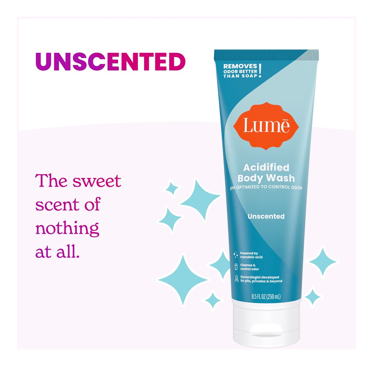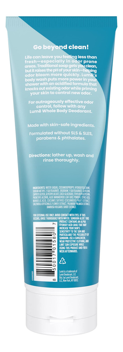Nossa fórmula de limpeza acidificada ajuda a pele que cheira melhor por mais tempo. Nosso sabonete líquido não apenas remove o odor, mas também está clinicamente comprovado que controla o odor por 24 horas após você sair do banho. – PH OTIMIZADO – O sabonete tradicional deixa você limpo, mas aumenta o pH da pele, ajudando o odor a florescer mais rapidamente. Nossa fórmula de limpeza acidificada ajuda a pele que cheira melhor por mais tempo. – ELIMINA E CONTROLE O ODOR – Está clinicamente comprovado que o sabonete líquido acidificado com lúmen remove o odor melhor do que o sabonete tradicional e controla o odor por 24 horas após você sair do banho. – Uniformiza visualmente o tom da pele – Comprovado clinicamente que reduz a aparência de hiperpigmentação e uniformiza visualmente o tom da pele. – Adoro a pele – Formulado sem SLS, SLES, ftalatos, e parabenos para limpar com segurança TODAS as áreas propensas a odores. Para um controle de odor extremamente eficaz, siga com qualquer desodorante corporal Lume. – Sem perfume – A escolha ideal para quem prefere o perfume de absolutamente nada.