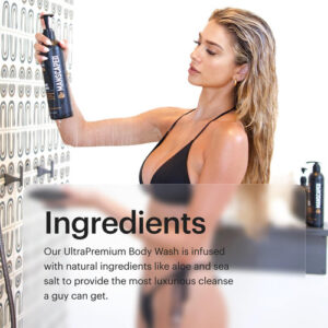 – GEL DE BANHO HIDRATANTE: Nosso sabonete líquido UltraPremium contém aloe vera e sal marinho refrescantes para ajudar a equilibrar e controlar a gordura corporal natural e manter a pele perfeitamente nutrida e hidratada.