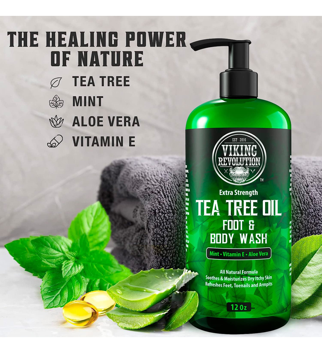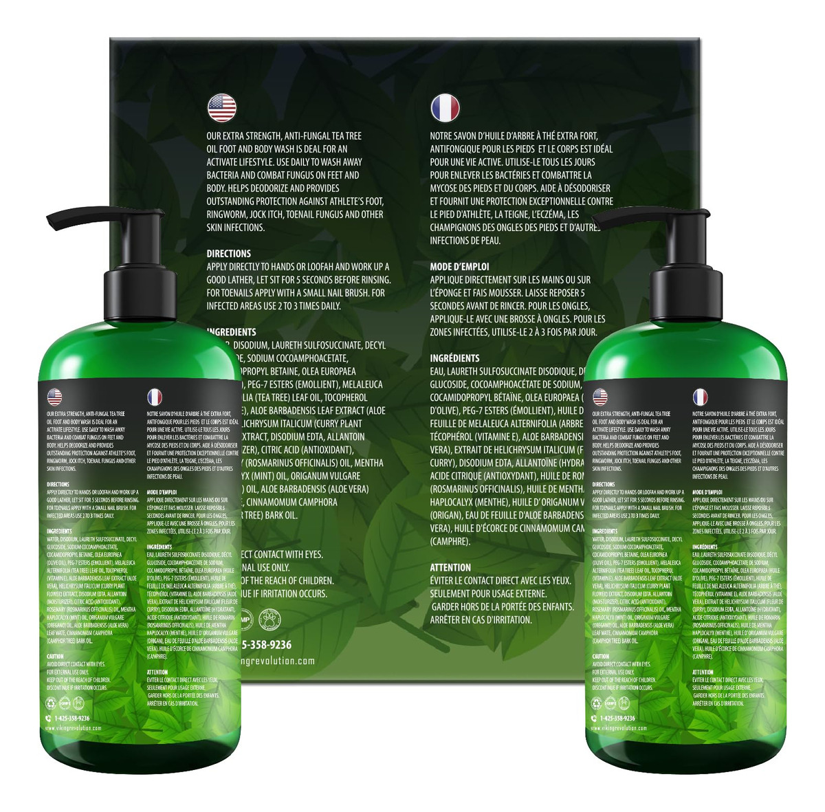 Pacote com 2 sabonetes líquidos Tea Tree para pés e coceira de atletas — Fórmula extra forte — Formulado para agir rapidamente e ajudar a prevenir várias doenças indesejadas — Totalmente natural — Feito com ingredientes totalmente naturais e um poderoso óleo de melaleuca — Forte defesa — Auxilia no tratamento do pé de atleta — Alivia a coceira na pele — Ajuda a combater o eczema e hidrata a pele ao mesmo tempo — A promessa da Viking: Se, por algum motivo, você não estiver totalmente satisfeito, basta entrar em contato conosco e Nós cuidaremos disso.