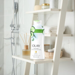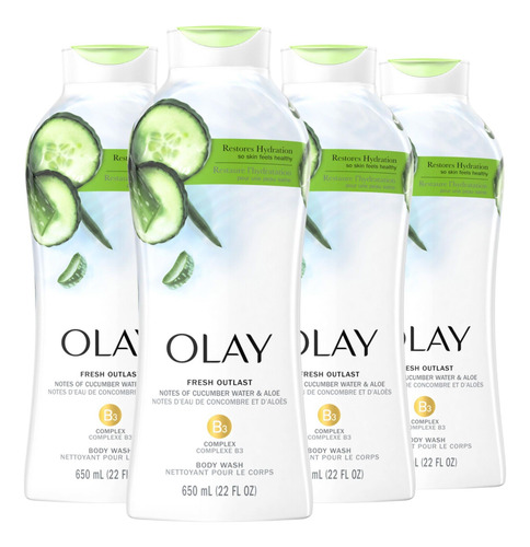 Sabonete líquido Olay Fresh Outlast com notas de pepino e babosa, 22 fl oz (pacote com 4) — PELE BONITA E SAUDÁVEL QUE VOCÊ PODE VER E SENTIR — Olay, formulado com complexo de vitamina B3 e notas restauradoras de água de pepino e babosa, hidrata a pele* para deixar você se sentindo revigorada. *versus sabonete comum – Contém notas de pepino e babosa – Restaura a hidratação para que a pele fique saudável – FORMULADO POR ESPECIALISTAS EM PELE DA OLAY: Há anos, testamos e aprimoramos fórmulas com nosso ingrediente exclusivo, o Complexo de Vitamina B3.