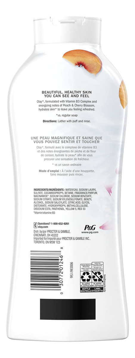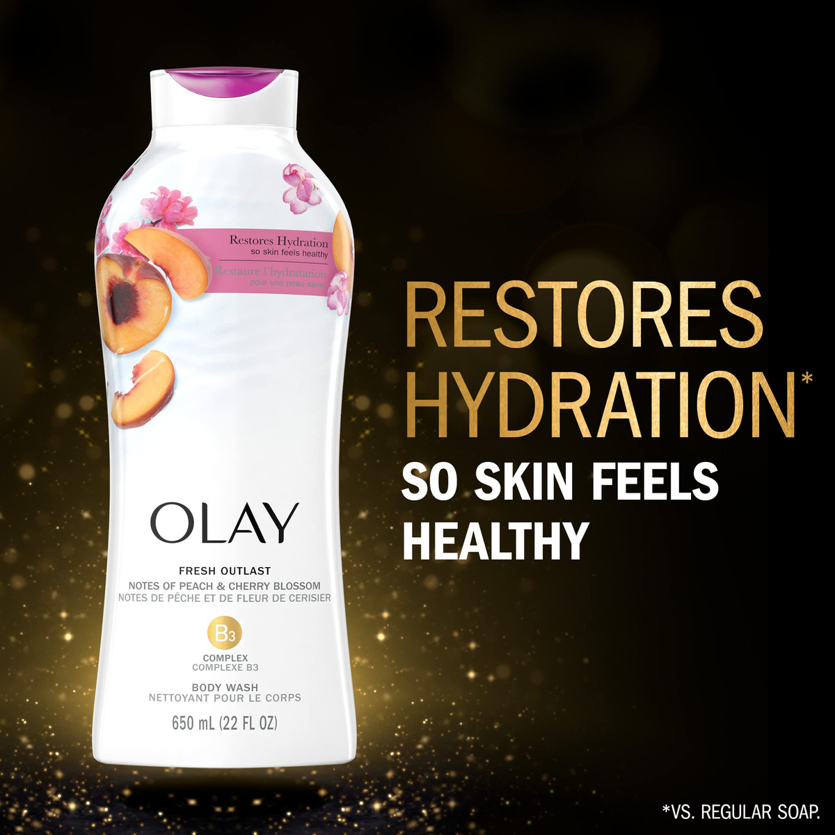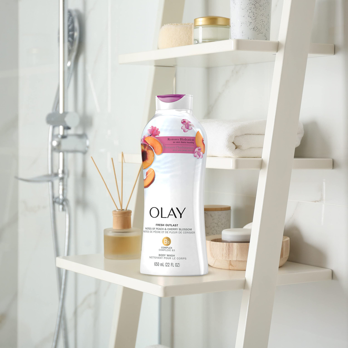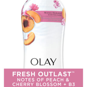 Sabonete líquido Olay Fresh Outlast sem parabenos com notas energizantes de pêssego e flor de cerejeira, 22 fl oz, pacote com 4 — Refrescante e restaurador: o sabonete líquido Olay Fresh Outlast limpa suavemente e restaura a hidratação da pele* para que a pele fique saudável e revigorada — Feito com cuidado: feito sem parabenos e enriquecido com nosso exclusivo complexo de vitaminas B3 — Deleite seus sentidos: o aroma rejuvenescedor de abacaxi e água de coco desperta os sentidos e permanece após o banho – FORMULADO POR ESPECIALISTAS EM PELE DA OLAY: apoiado por mais de 65 anos de ciência da beleza para beleza, pele saudável que você pode ver e sentir – PARA TODOS OS TIPOS DE PELE: faz maravilhas com qualquer tipo de pele seca, oleosa e tudo mais