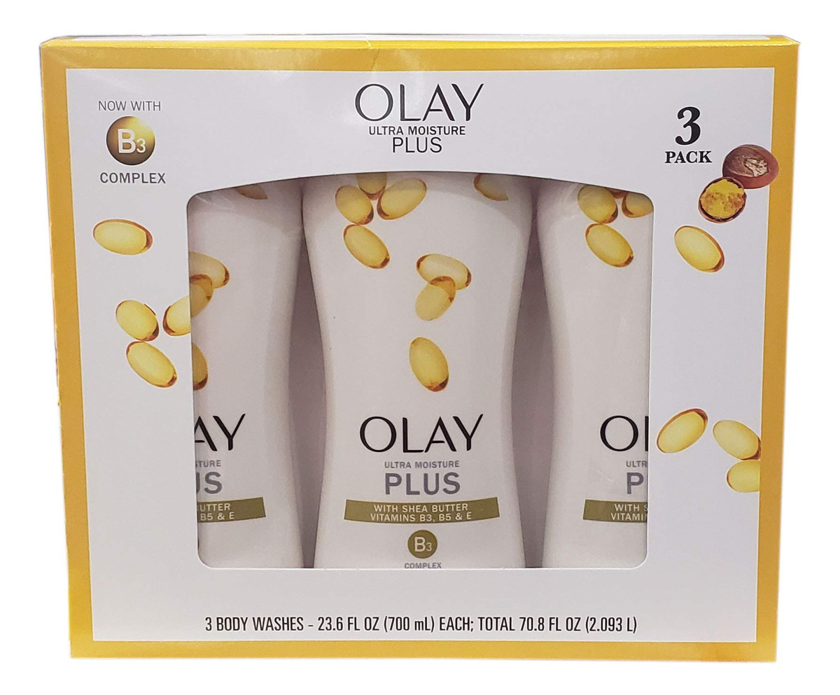 Sabonete líquido Olay Olay Olay Ultra Moisture Plus (contagem líquida de 3 x 23,6 onças de peso líquido de 70,8 onças), – Deixa sua pele macia e com aparência saudável – Fornece hidratação durante todo o dia – Agora com complexo B3
