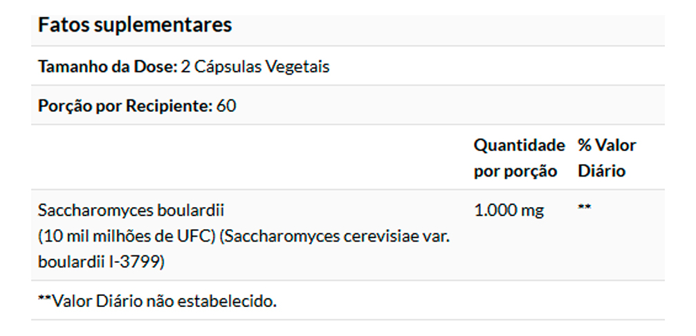 Formulado com Saccharomyces Boulardii, este produto inclui ainda outros ingredientes selecionados para proporcionar funcionalidade. Cada cápsula foi pensada para atender às suas necessidades de maneira prática e eficiente. Validade longa