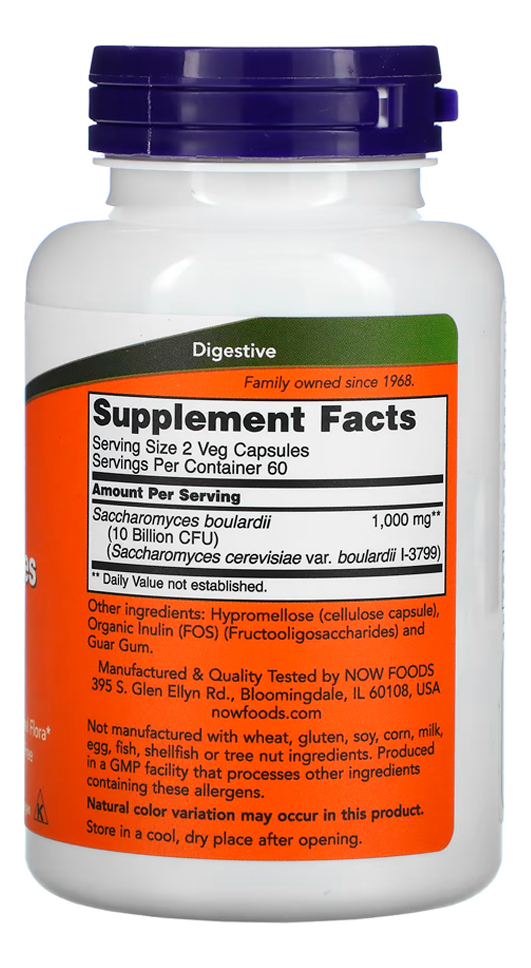 Saccharomyces Boulardii Probiótico 5BI Now 120 Cápsulas