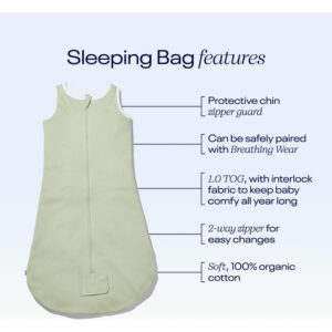 Saco de dormir Nanit Sleep Wear — grande, pistache — Uma alternativa segura para dormir, o saco de dormir Nanit Sleep Wear mantém os pequenos confortáveis durante todo o ano. Com bastante espaço para pernas pequenas se mexerem, chutarem e se esticarem, é o próximo passo para bebês ativos e após enfaixar. — Feito de algodão orgânico 100% certificado GOTS, lavável à máquina e pode ser secado — Zíper bidirecional para trocas rápidas de fraldas até tarde da noite; capa com zíper sem níquel, além de protetor de queixo para peles sensíveis — STANDARD 100 da OEKO-TEX — Pode ser combinada com segurança com todos os Nanit Breathing Wear