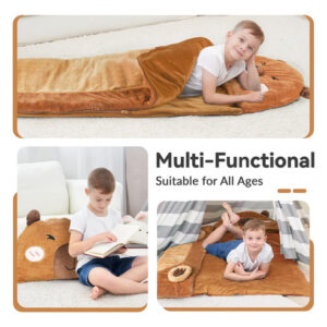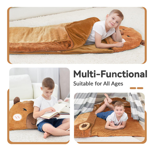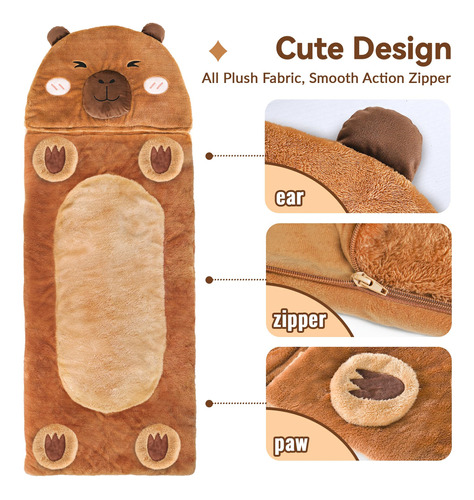 iPlay, saco de dormir infantil iLearn, bolsa de dormir de pelúcia para capivara, tapete de soneca para meninas e meninos, travesseiro marrom 2 em 1 para animais, creche Happy Travel Sleepover, presente de aniversário pré-escolar para crianças de 3 anos, 4, 5, 6, 7, 8, 10 12 anos. Tecido adequado para a pele. O saco de dormir de capivara é feito com fibras de poliéster 100% macias e respiráveis, garantindo um local aconchegante e repousante para seu filho um. Ele serve como um local aconchegante e repousante para as crianças tirarem uma soneca rápida ou relaxarem, permitindo que elas recarreguem suas energias. – Maior e mais largo. O tapete de dormir mede 70 “x 27" x 2", que é extra grande, largo e grosso. Esse tamanho oferece uma experiência mais quente e confortável para a pré-escola, creche, jardim de infância e festas do pijama. Também pode ser usado como opção de assento para ler ou assistir TV. É adequado para crianças de 1 a 8 anos. – Dobre em um travesseiro Este saco de dormir tem um design exclusivo 2 em 1 que permite que seja dobrado em um travesseiro. Quando embalado, parece um brinquedo de pelúcia que seu filho pode abraçar e brincar. Também pode ser usado como complemento ao quarto, sala de jogos ou sala de estar do seu filho. – Lavável à máquina. Manter o saco de dormir limpo é muito fácil! Coloque o tapete de dormir na máquina de lavar em um ciclo suave com água fria e depois seque na secadora em fogo baixo. Recomenda-se usar apenas detergente neutro e evitar alvejante. – Opção de presente quente Seria uma opção de presente quente para meninas e amantes de capivaras. Adequado para Natal, aniversários, Dia das Crianças e Dia dos Namorados. Este divertido e colorido saco de dormir com certeza será o centro das atenções na próxima festa do pijama. Leve a aventura de dormir do seu filho para qualquer lugar!