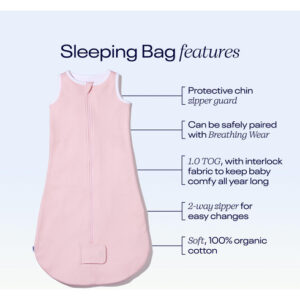 Saco de dormir Nanit Sleep Wear — Grande, rosa — Uma alternativa segura para dormir, o saco de dormir Nanit Sleep Wear mantém os pequenos confortáveis durante todo o ano. Com bastante espaço para pernas pequenas se mexerem, chutarem e se esticarem, é o próximo passo para bebês ativos e após enfaixar. — Feito de algodão orgânico 100% certificado GOTS, lavável à máquina e pode ser secado — Zíper bidirecional para trocas rápidas de fraldas até tarde da noite; capa com zíper sem níquel, além de protetor de queixo para peles sensíveis — STANDARD 100 da OEKO-TEX — Pode ser combinada com segurança com todos os Nanit Breathing Wear
