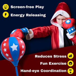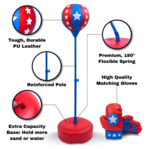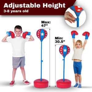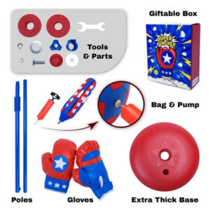 Saco de pancadas para crianças – EXERCÍCIOS: mantenha as crianças ativas e saudáveis com um divertido saco de pancadas projetado para criar força, coordenação e confiança brincando. – SAÍDA DE ENERGIA POSITIVA: fornece uma maneira saudável e construtiva de as crianças liberarem energia reprimida, controlarem o estresse e permanecerem fisicamente ativas de forma divertida e envolvente. – DURÁVEL: construído com materiais resistentes a rasgos de alta qualidade, uma base personalizada mais espessa para maior estabilidade com capacidade extra de água ou areia e uma fonte durável para uma ação de rebote consistente. — Ótimo presente: perfeito para jogos ativos, este O saco de pancadas é a escolha ideal para brinquedos para crianças de 6 anos ou presentes para um garoto de 5 anos que adora se manter ativo e se divertir. – COMPARTILHE E CRESÇA: o design com altura ajustável o torna perfeito para irmãos e primos compartilharem, adaptando-se à medida que as crianças crescem para anos de diversão ativa juntos.